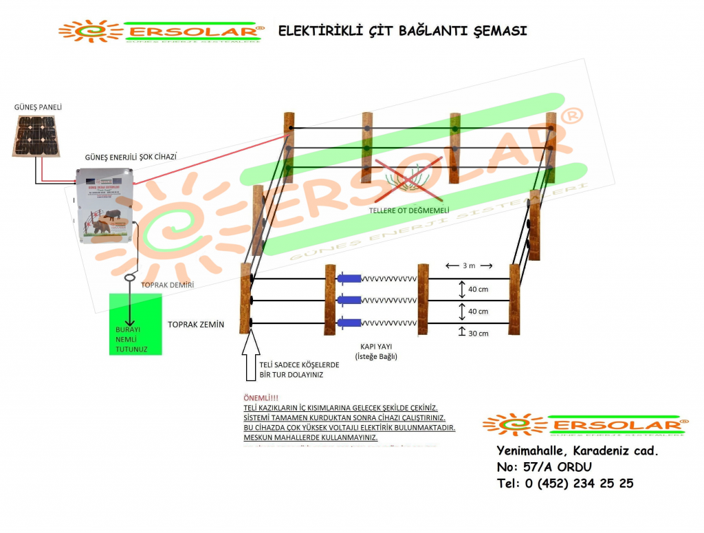 - Elektrikli çit sensörlü olup isteğe göre gece veya 24 saat kesintisiz olarak çalıştırılabilir.