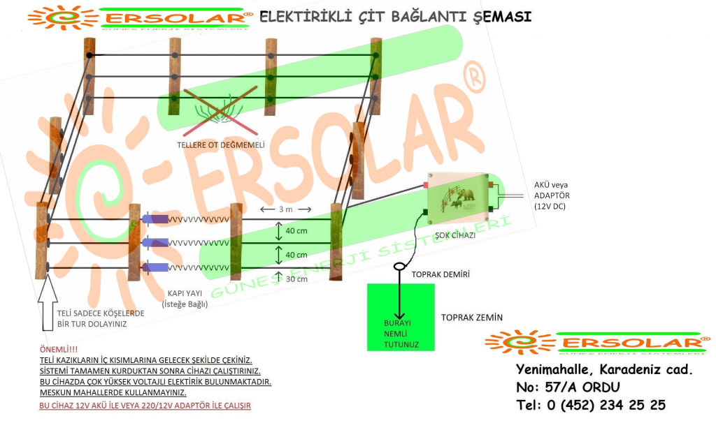 - Elektrikli çit sensörlü olup isteğe göre gece veya 24 saat kesintisiz olarak çalıştırılabilir.
